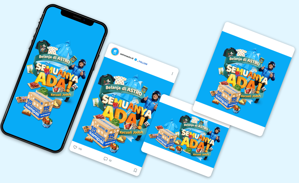 As a Freelance Graphic Designer at ASTRO, I amplify the brand’s #15MENITSAMPAI promise through AI-driven visuals and short-form videos, delivering high-impact creative assets that reinforce its fast, dependable quick-commerce experience.