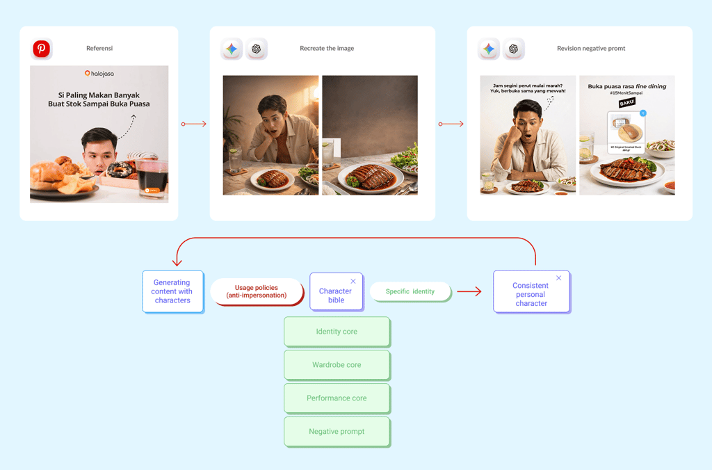 Designed a series of Instagram feed visuals for the launch of a new smoked duck SKU, with a core focus on building a consistent personal character for the brand's content. To ensure visual and tonal coherence across posts, I developed a structured prompt workflow that prevents anti-impersonation risks and establishes a reusable character framework.